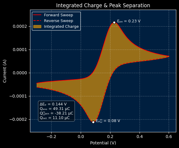 Whether you're quantifying redox activity or evaluating reversibility, integrating charge and measuring peak separation are two of the most powerful metrics in electroanalysis.